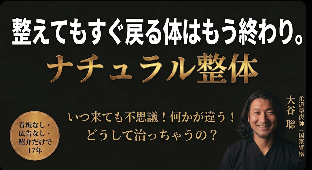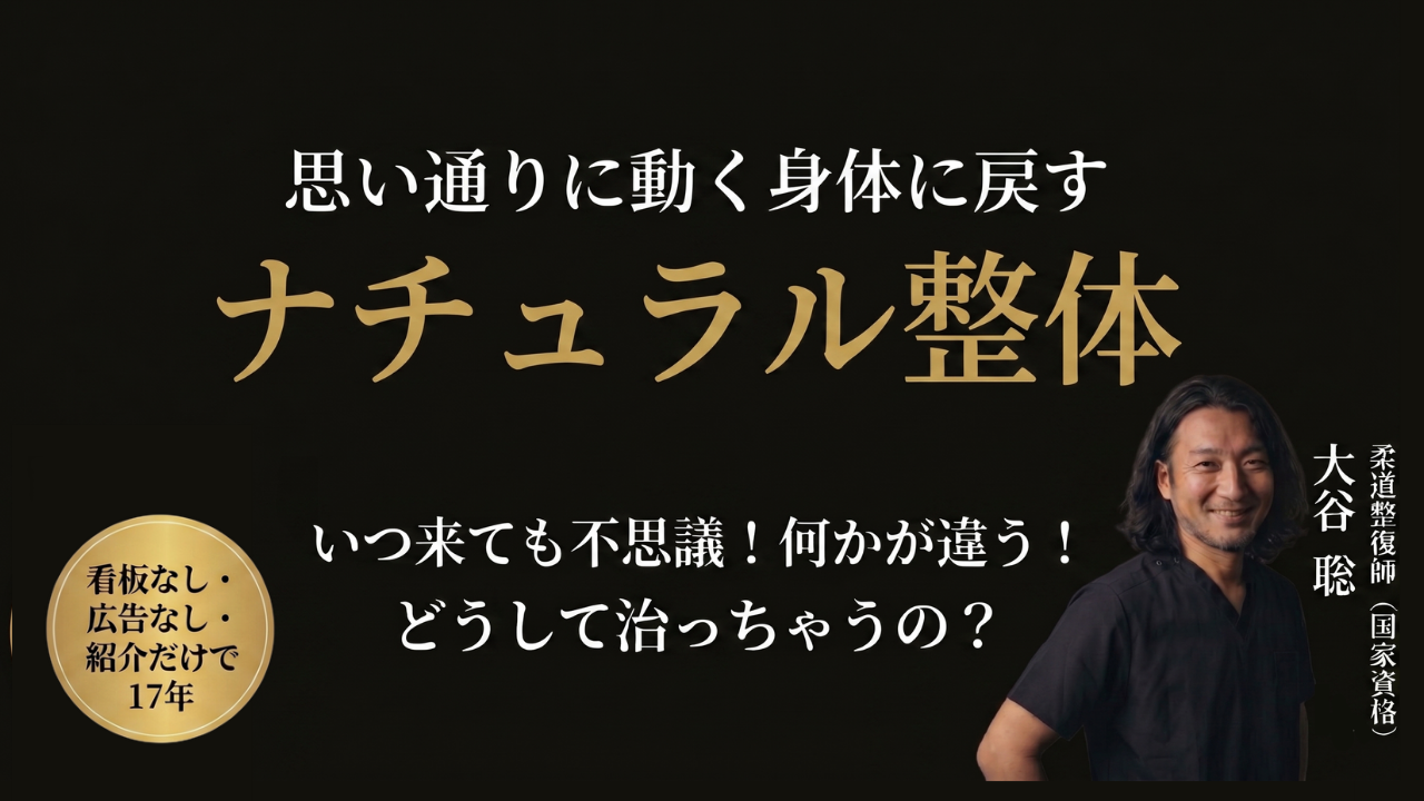 骨盤の歪みや筋肉不足を原因にして来させ、強迫観念でリピートさせる。それが整体業界の標準的なビジネスモデルです。私はそれをやらないと決めた。看板も広告も出さず、紹介だけで17年間やってこられた。理由は一つです。結果だけが、唯一の信頼だからです。